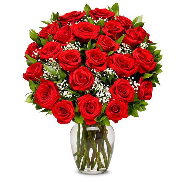 Ürün Kodu: ÇS7Cam vazoda 24 kırmızı gül, cipsofilya ve yeşillik bulunmaktadır.